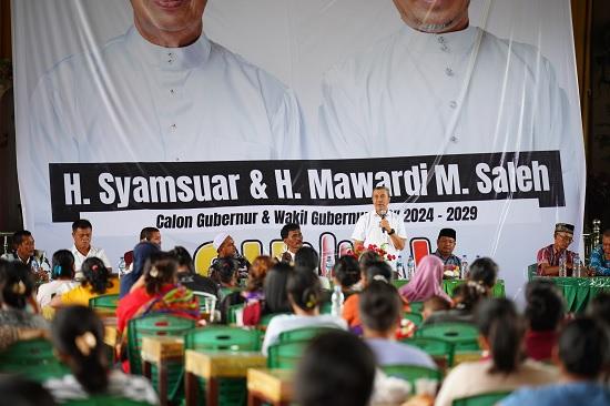 Tahun 1984 saya sudah berada di sini, baru sekali ini ada gubernur atau paslon Gubernur Pak Syamsuar yang mau hadir di tempat kita ini. Makanya Pak Syamsuar semakin berada di tengah-tengah hati kami,"