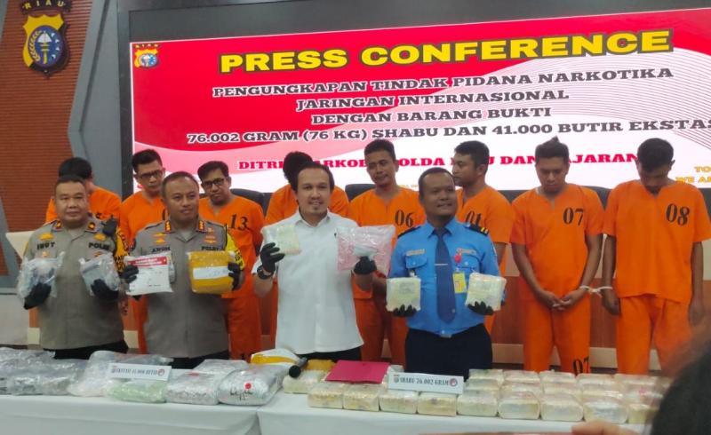 Polda Riau Bongkar Jaringan Narkoba Internasional, Amankan 76 Kg Sabu dan 41.000 Ekstasi