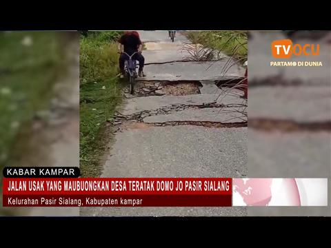Jalan yang maubuongkan desa teratak domo jo kelurahan pasir sialang kini mengalami kerusakan. Hal ini cukuik dikoluohkan dek warga karna maambek aktifitas warga. Dan bagi warga yang mempunyoi kendaraan roda ompek harus mancai jalan alternatif yg lain. Berita salengkapnyo, saksikan di Chanel TV ocu.