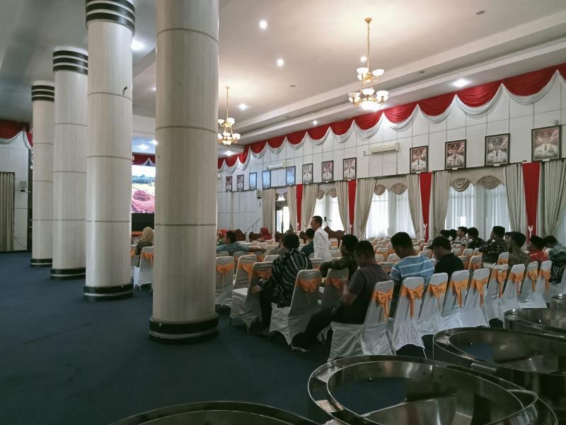 Undangan saat ini sudah mulai berdatangan dan mengisi kursi yang telah disediakan di Aula Balai Pendopo, Rumah Dinas Bupati Kampar. (Ar)