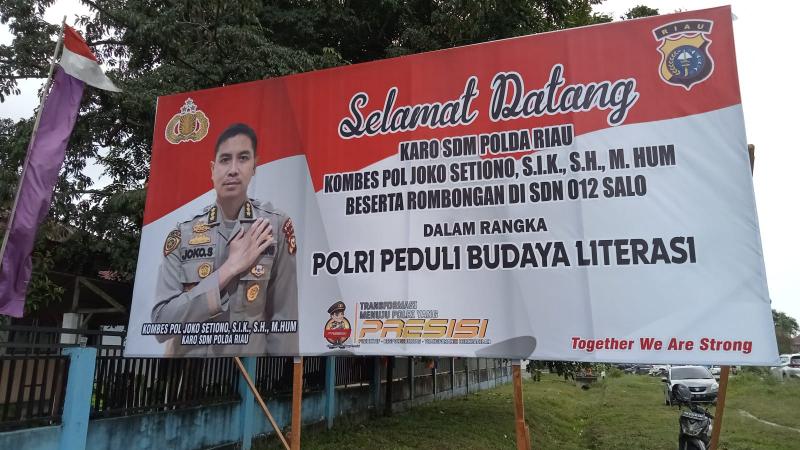 Karo SDM Polda Riau ini mewakili Kapolda Riau Irjen Pol Mohammad Iqbal dalam rangka menyerahkan buku kepada SDN 012 Salo.