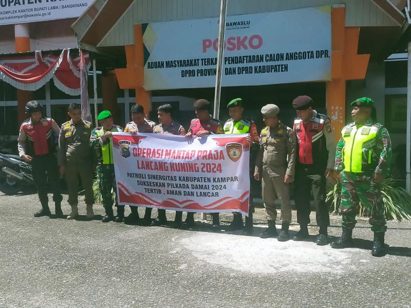 Operasi Mantap Praja Lancang Kuning 2024 dalam melakukan Partoli keliling bersama terdiri dari Polri, TNI dan Satuan Polisi Pamong Praja Kabupaten Kampar.
