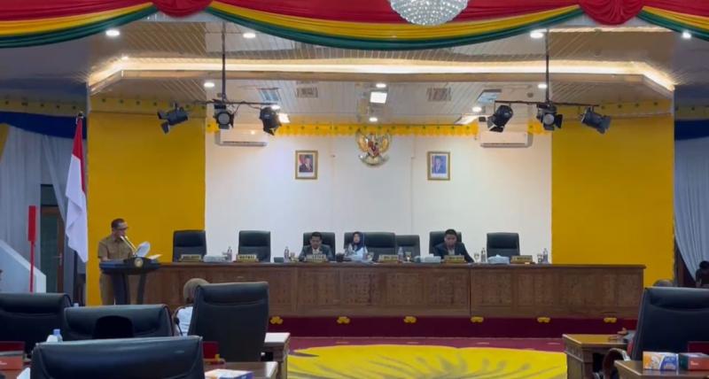 BANGKINANG KOTA (RRTV) - DPRD Kabupaten Kampar menggelar kegiatan Rapat Paripurna dengan agenda Jawaban Pemerintah Atas Pandangan Umum Fraksi-Fraksi DPRD terhadap Rancangan Peraturan Daerah (Ranperda) Pertanggungjawaban Pelaksanaan APBD Kampar tahun 2024. Rapat Paripurna tersebut dipimpin langsung oleh Wakil Ketua DPRD Iib Nursaleh.