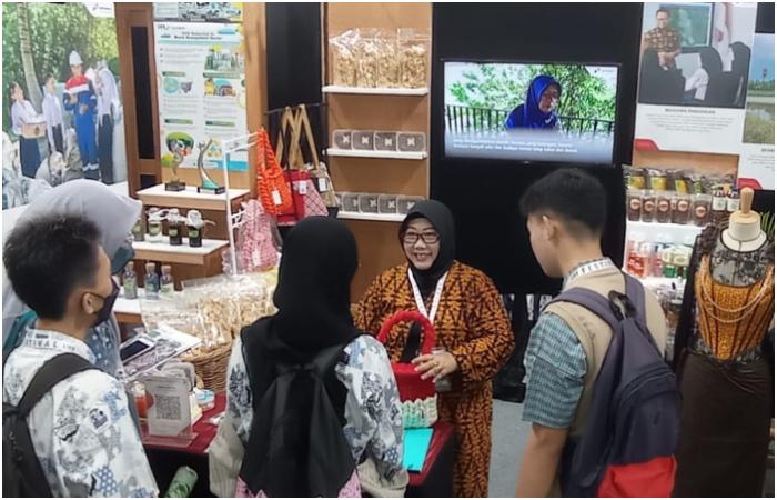 Pengunjung ramai mendatangi stand pameran (Booth) Bank Sampah Ibnu Almubarok yang menampilkan sejumlah produk turunan dari daur ulang sampah.