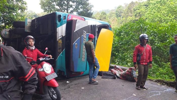 Bus Rombongan Mahasiswa Universitas Riau Terbalik di Silaiang Sumbar, 33 Orang Luka-luka