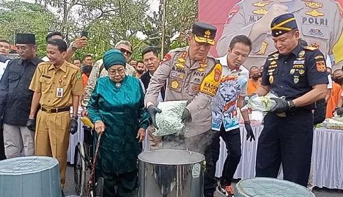 Kapolda Riau, Irjen M Iqbal menjelaskan, barang bukti yang dimusnahkan, yakni 14.958 botol miras dari berbagai merek, 12.000 bungkus rokok ilegal, 6.518 butir pil happy five, 746,48 gram ganja kering, 29.814 butir ekstasi, 32,9 kilogram sabu, 342 unit komputer dan ribuan knalpot brong.