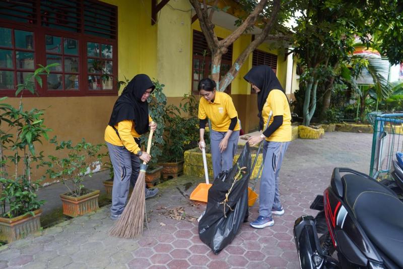 " Dalam kegiatan Bakti Sosial ini Polwan Polda Riau membersihkan pekarangan dan lingkungan di SDN 026 dan SMPN 13 kota Pekanbaru ", ujar Henny.