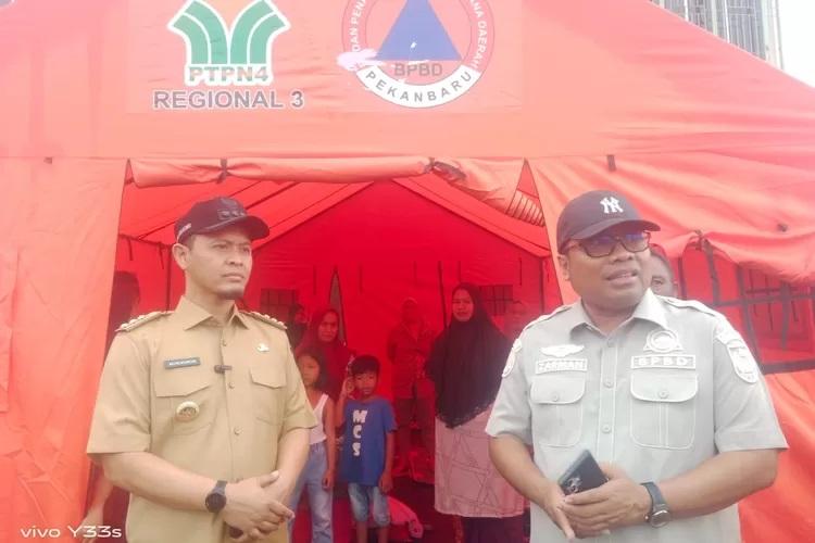 Sambil meninjau, Walikota juga sempat menanyakan penyebab terjadinya banjir, diketahui belakangan ini pintu penahan air jebol, sehingga air yang berada di Sungai Siak masuk ke pemukiman warga