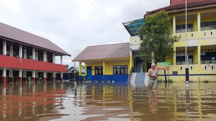 PEKANBARU (RRTV) - Bangunan sekolah yang terendam banjir di Kota Pekanbaru diliburkan terhitung, Kamis (6/3/2025). Jumlah sekolah yang terendam banjir akibat luapan Sungai Siak mencapai 17 sekolah.