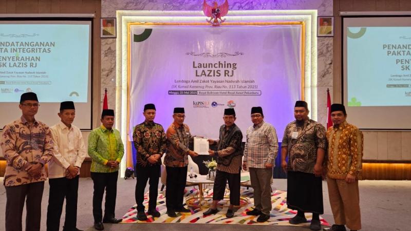 Acara dilanjutkan dengan pembacaan dan penanda-tanganan pakta integritas oleh Ketua Yayasan Nadwah Islamiyah, Mashudi. Peresmian LAZIS RJ ditandai dengan penyerahan Surat Keputusan (SK) Kanwil Kemenag Provinsi Riau Nomor 113 Tahun 2025. ‘’Semoga dengan keberadaan LAZIS RJ bisa berbuat lebih banyak untuk umat dan berkolaborasi dengan berbagai pihak,’’ harap Mashudi.