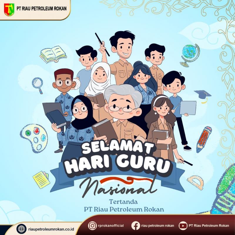 PEKANBARU (RRTV)— PT Riau Petroleum Rokan (RPR) menyampaikan ucapan selamat Hari Guru Nasional yang diperingati setiap 25 November. Perusahaan daerah yang bergerak di sektor energi tersebut memberikan apresiasi atas peran besar guru dalam mencerdaskan kehidupan bangsa dan mendorong kemajuan daerah.
