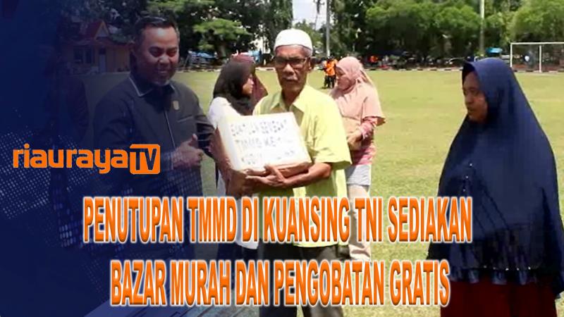 riauraya.tv - Setelah satu bulan pengerjaan program TNI Manunggal Membangun Desa (TMMD) ke 114 di Kab. Kuansing resmi ditutup. Penutupan ditandai dengan pelaksanaan upacara di Lapangan Limuno, Teluk Kuantan. Juga, pembagian sembako, bazar murah, dan pengobatan gratis.