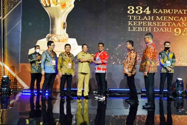 Penghargaan diserahkan oleh Menteri Dalam Negeri (Mendagri), M Tito Karnavian kepada Bupati Pelalawan, H Zukri di Balai Sudirman, Jakarta Selatan, Selasa (14/03/2023).