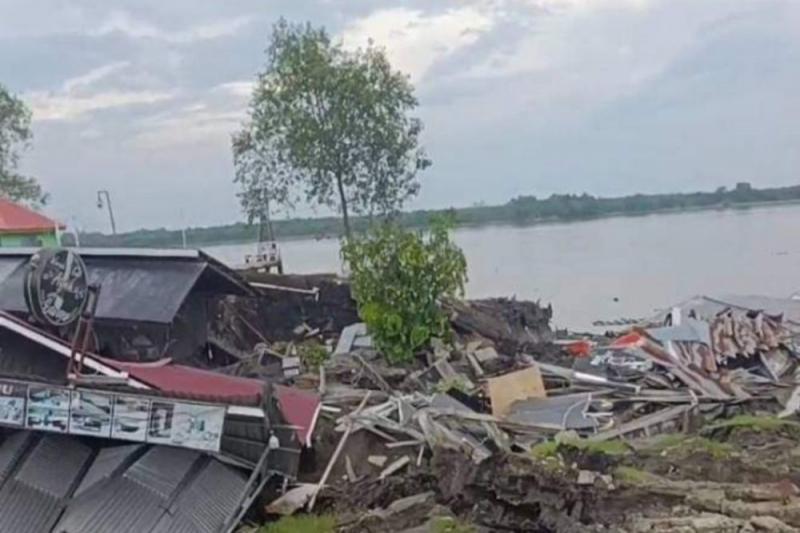 Tembilahan Hulu Longsor, Sejumlah Rumah Terjun ke Sungai