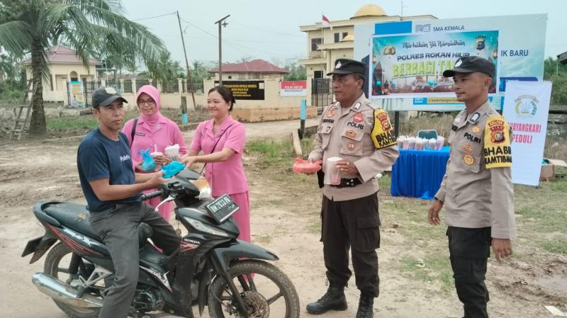 RIAUHITS.COM, SINABOI -- Dengan tema"Marhaban Ya Ramadhan Polres Rokan Hilir Berbagi Takjil, Semoga Berkah", Polsek Sinaboi berbagi Takjil kepada warga di Jalan Poros Sungai Bakau, Kecamatan Sinaboi Rokan Hilir.