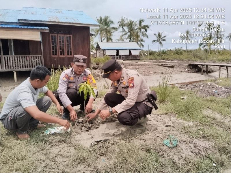 RIAURAYA.TV, SINABOI -- Jumat tgl 11 April 2025 sekira pkl 11.40 wib sejumlah personil kepolisian Polsek Sinaboi, Polres Rokan Hilir melaksanakan giat penanaman pohon dalam rangka penghijauan.