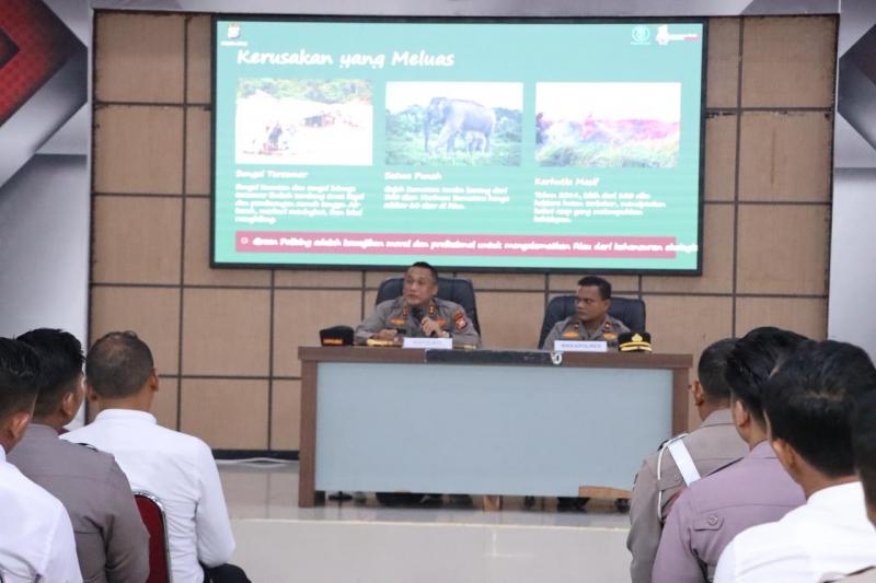 Seluruh personil harus memahami Green Policing dan mampu mensosialisasikan kepada masyarakat maupun anak-anak sekolah, Program Bapak Kapolda Riau ini untuk menjaga kelestarian lingkungan dengan cara menjaga lindungan hidup, menjaga keseimbangan antara keamanan dan lingkungan.