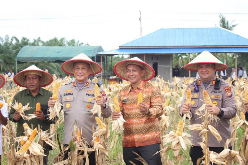 Kapolres Rohil Pimpinan Panen Raya Jagung di Suak Air Hitam Pekaitan